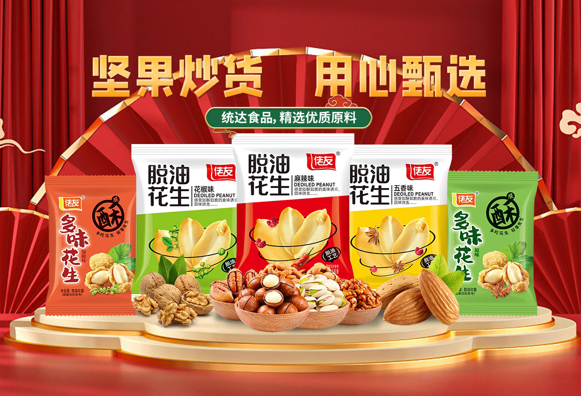 洛陽市統(tǒng)達食品有限公司創(chuàng)建于2013年,坐落于風景秀麗的嵩山腳下,東依省會鄭州、隴海、焦枝兩大鐵路在此交匯,西連高速,洛界高速,縱橫東西南北,207國道,交通便利。當?shù)丨h(huán)境優(yōu)美。經(jīng)濟繁榮昌盛,實為興業(yè)辦企,鴻運福順的好地方。少林寺,白馬寺,龍門石窟,玄奘故里等名勝古跡星羅棋布,近在咫尺,盡展千年華夏文明。 我廠是一家集生產(chǎn),研制,銷售為一體的食品加工企業(yè),總投資1500萬元,廠房占地面積5000平方米,員工100余人,其中技術(shù)人員20余人,年加工能力達1500余噸。公司以堅果炒貨為主導(dǎo),自主三大品牌:統(tǒng)達牌、紅仁館牌、佬友牌和授權(quán)品牌速達,主要產(chǎn)品有酒鬼花生系列,麻辣花生系列,香辣酥系列,果仁裹粉類系列,怪味胡豆系列,蠶豆、青豆系列等多個品類。產(chǎn)品暢銷全國各地,深受用戶好評。產(chǎn)品選自上等原料經(jīng)多次精選而制,秉承濃郁的特色風味,保留其原材料的營養(yǎng)和原汁原味,富含不飽和脂肪酸和人體必需的氨基酸和鋅元素,不含膽固醇,黃曲霉素,不添加防腐劑、著色劑;具有濃郁獨特的香味,是真正的“從土地到餐桌”的健康食品。產(chǎn)品特點:色澤金黃,顆粒飽滿,然后經(jīng)多種工藝加精良的天然配料精制而成,鎖生產(chǎn)出來的產(chǎn)品既保持著產(chǎn)品的獨到的口味,又不失產(chǎn)品天然的營養(yǎng)成分,滋味純正,辣椒鮮紅食之麻,辣,香,酥,甜,口感獨特,食后滿口生香,欲罷不能。久食不厭,老少皆宜,居家旅游,佐食配茶,宴賓饋友之佳品,深受廣大顧客歡迎和贊揚。 我們將以精湛的工藝,科學(xué)的管理,嚴格的質(zhì)量控制,優(yōu)異的品質(zhì)保障,以誠信,創(chuàng)新,勤奮,求實的企業(yè)精神,立于強者之林,迎接新的挑戰(zhàn)。以飽滿的熱情迎接與你的合作。 本公司“以質(zhì)量求生存,以誠信求發(fā)展”歡迎有志之士加入我們的團隊,攜手共創(chuàng)美好明天!